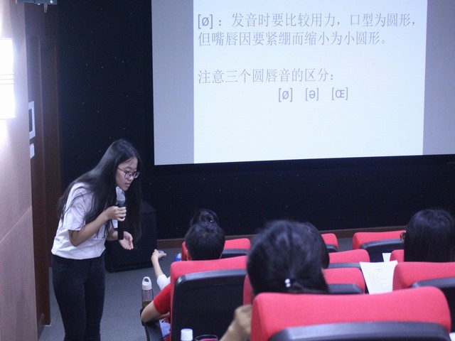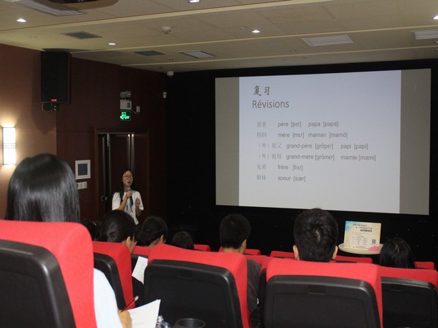 本期兴趣班的课程内容从两个方面进行了设计,一部分为专业的法语知识学习,内容覆盖了法语入门的语音语法、词法句法知识。从问候语、家庭成员称谓等简单词汇教起,逐渐进阶到自我介绍、问路等句式的教学。课程中插入音标及发音方法的讲解,并通过逐个纠音的方法,让学员们逐渐掌握标准的法语发音,满足了学员专业法语学习的愿望。经过六节课的学习,大部分学员能用法语进行简单的自我介绍,家庭成员介绍,并用法语问路。与此同时,对法语独特的发音也有所了解和体验。“法语跟英语真的很不同,法语更美。”一名学员如是说。