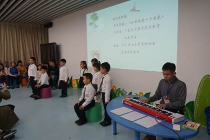 活动结束前,在志愿者李赫飞的键盘伴奏下,现场所有孩子们一起演唱歌曲《如果感到幸福你就拍拍手》,主持人鼓励孩子们跟着音乐歌词和节奏一起“拍拍手”、“跺跺脚”,充满韵律的歌声和有节奏的动作,伴随着孩子们的笑脸将活动带向了高潮。