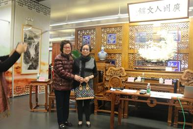 图1.粤乐大师梁以忠长女、粤曲“琴腔”创立人、粤剧名伶梁素琴女士与著名星腔艺术家黄少梅女士莅临广州人文馆,读者反应热烈。