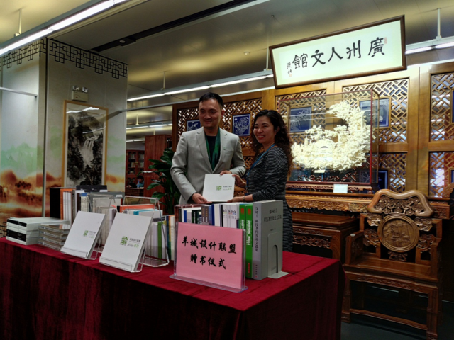 图1.盛宇宏会长代表羊城设计联盟向广州图书馆赠书,罗小红副馆长代表接受。